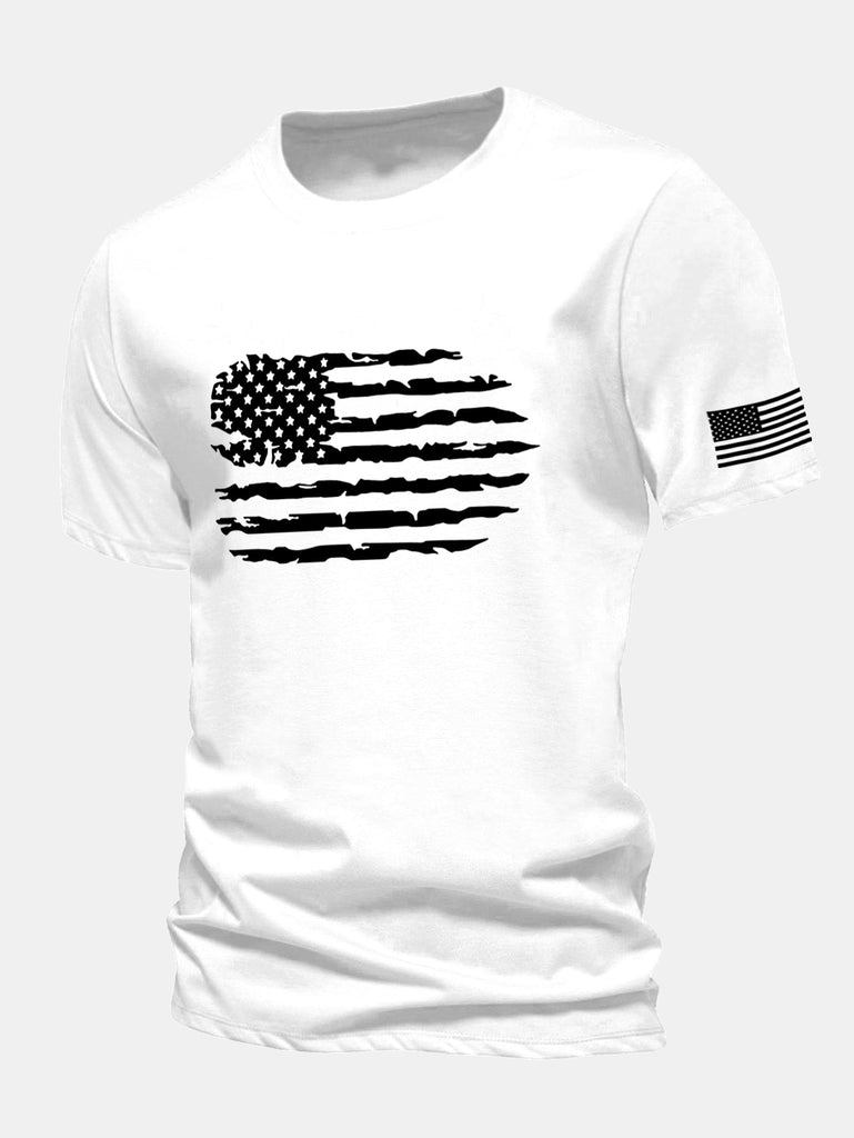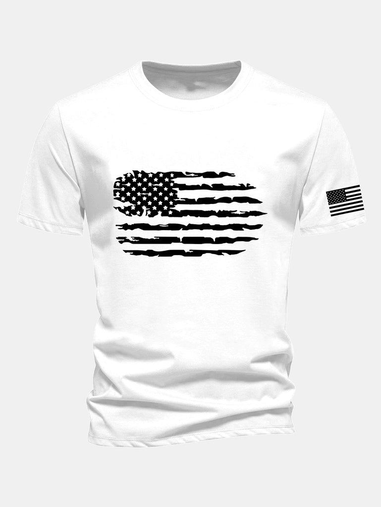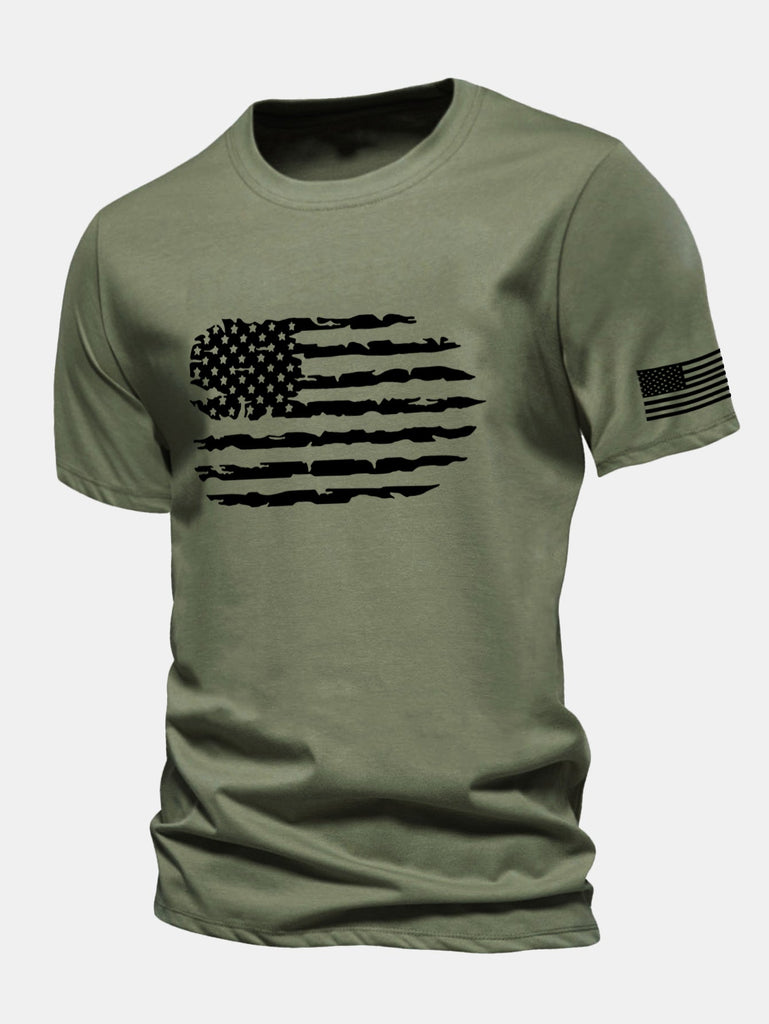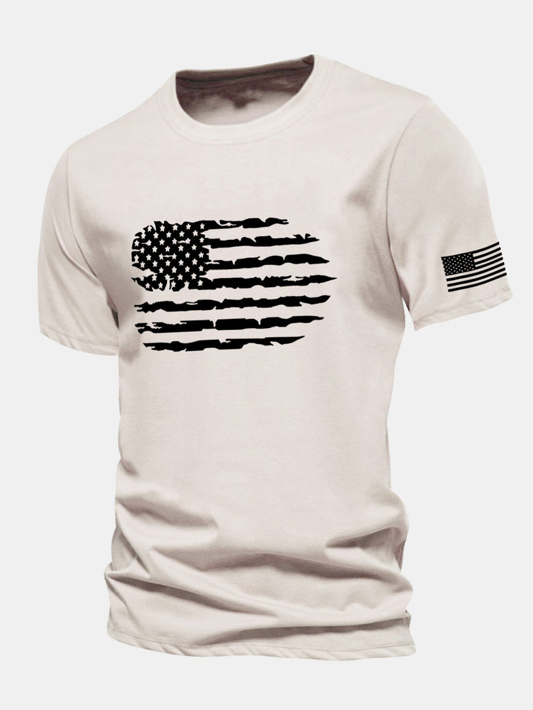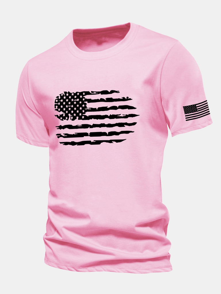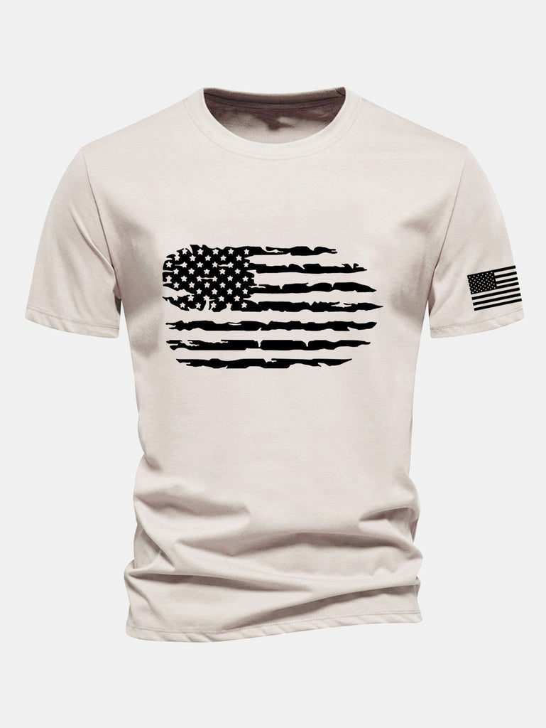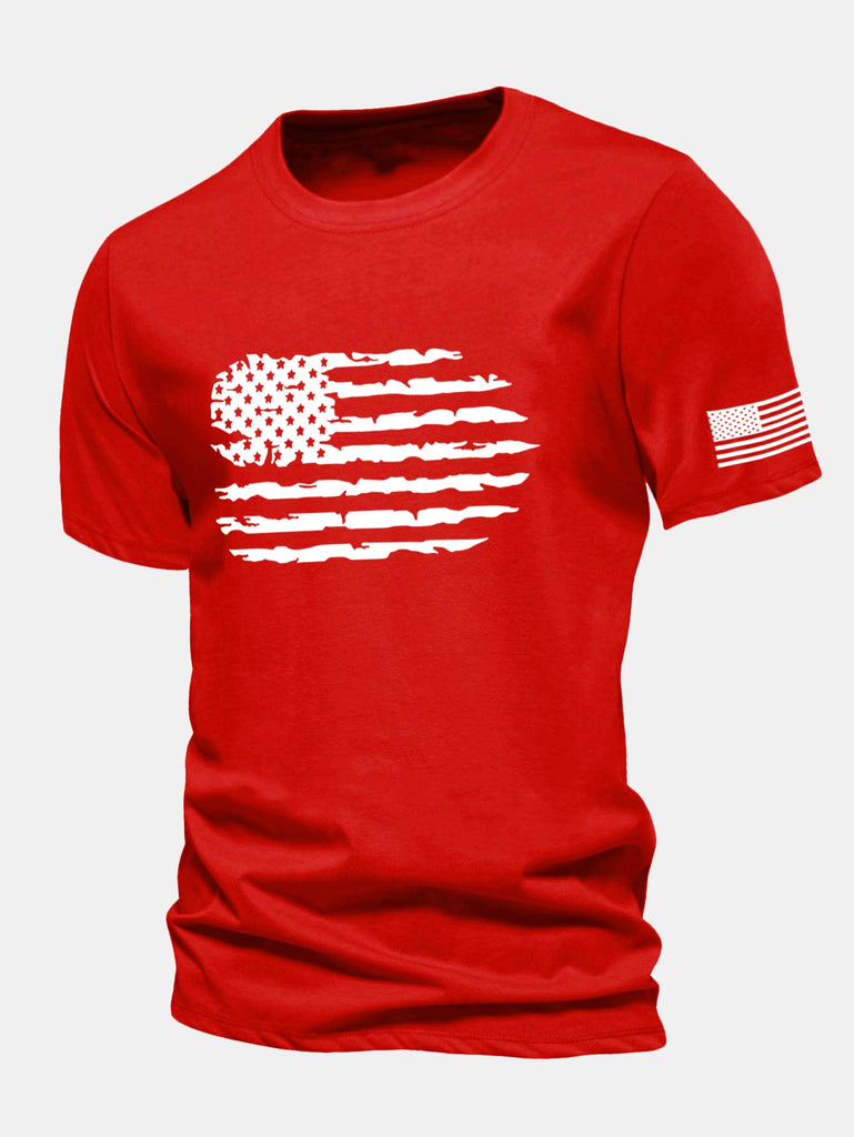 Regular Fit American Flag Print Cotton T-Shirt