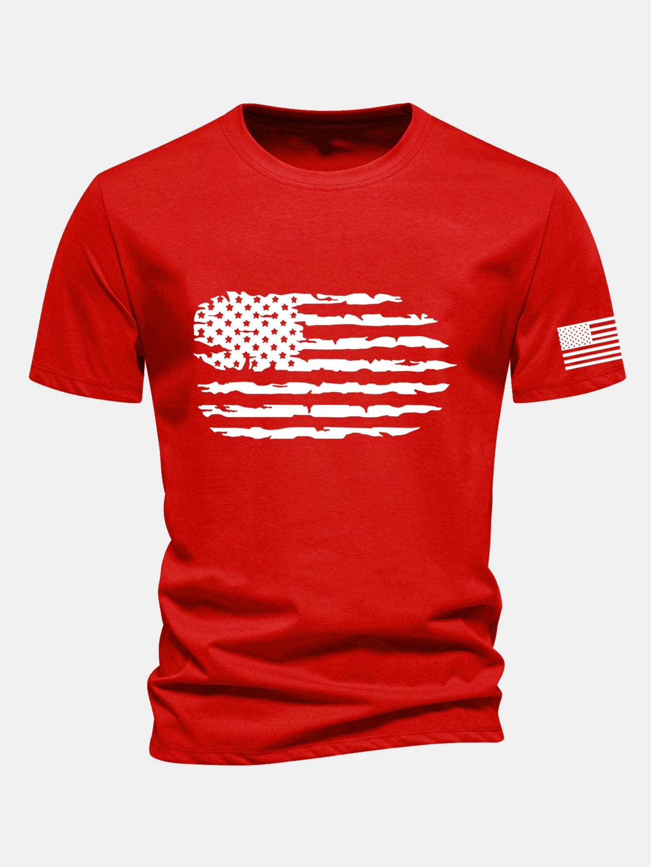 Celebrate your American spirit in style with this classic regular fit T-shirt featuring a bold American flag print. Made from 100% breathable cotton, this tee offers all-day comfort and effortless versatility¡ªperfect for casual days, barbecues, or Fourth of July celebrations.