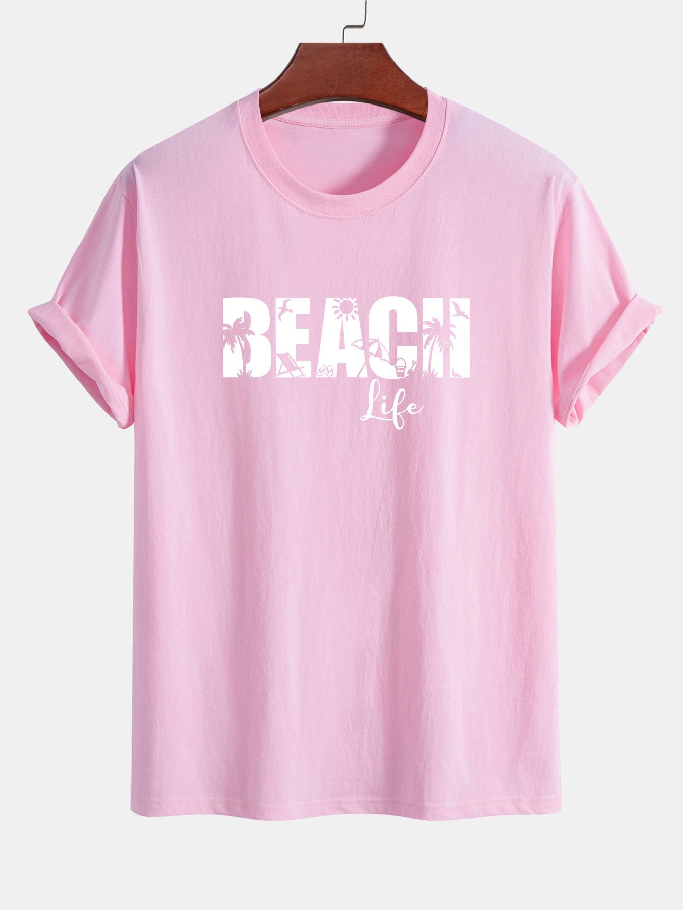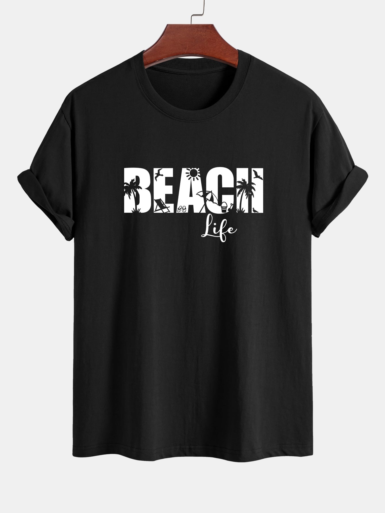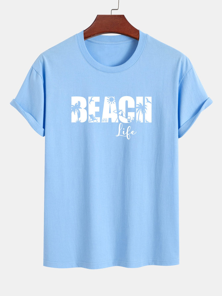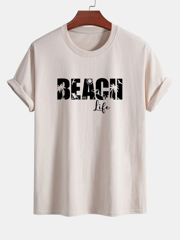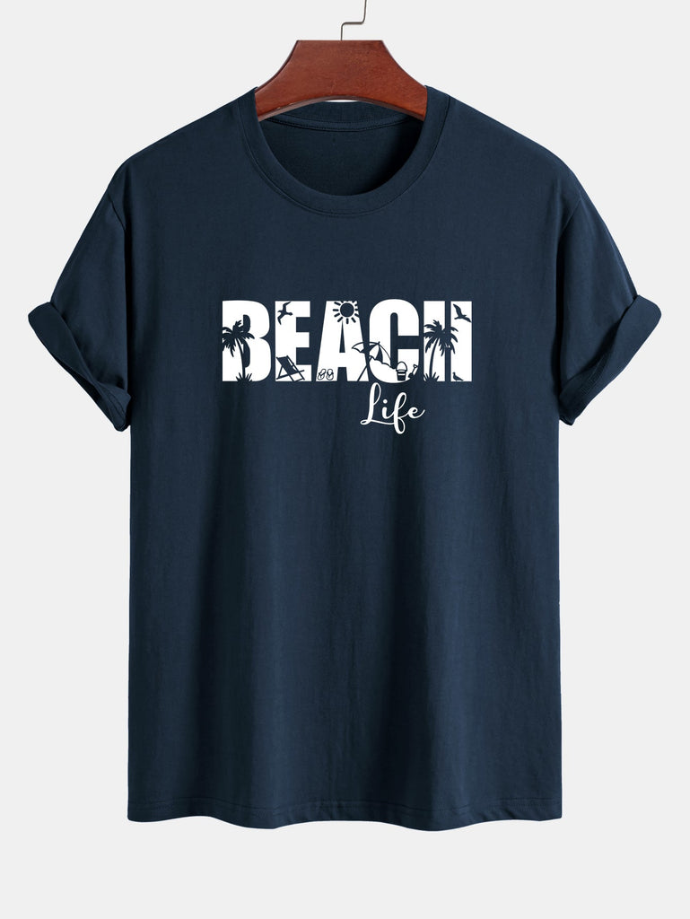 Embrace sun-soaked days and easy vibes with our beach life print cotton T-shirt. Featuring a relaxed silhouette and cheerful coastal graphic, this tee is your go-to for warm-weather comfort and laid-back style ¡ª whether you're by the ocean or just dreaming of it.