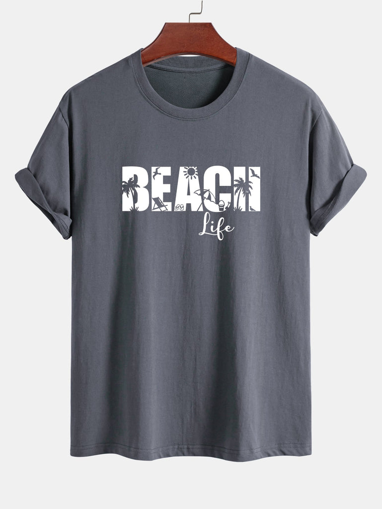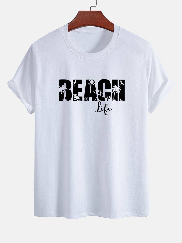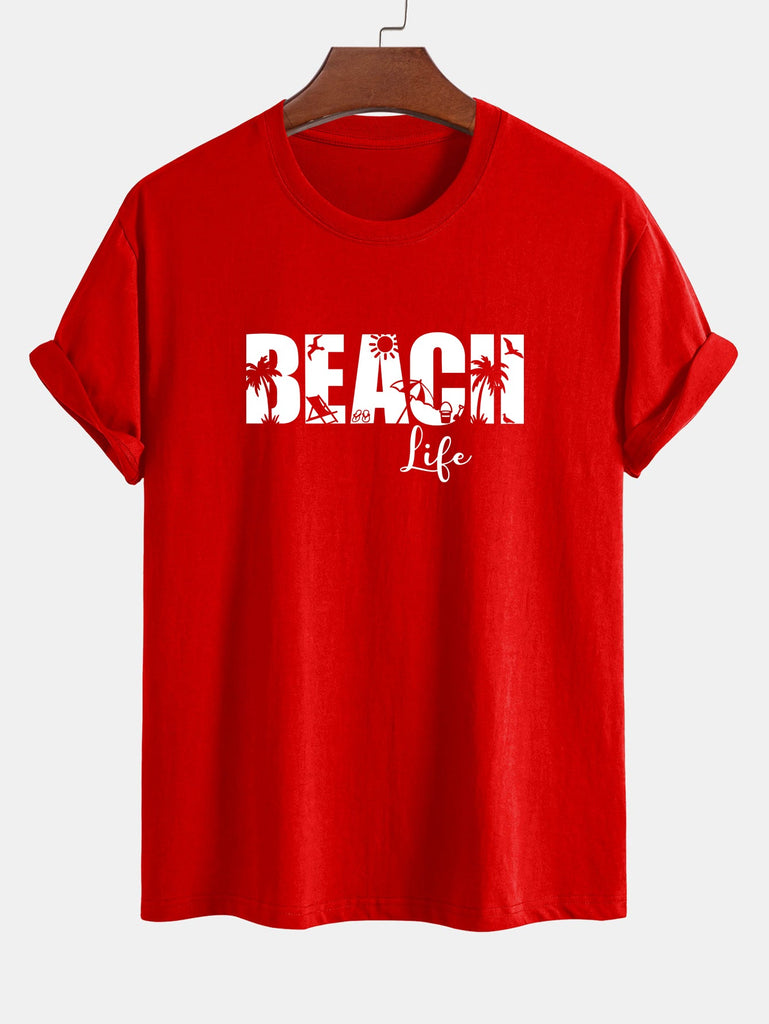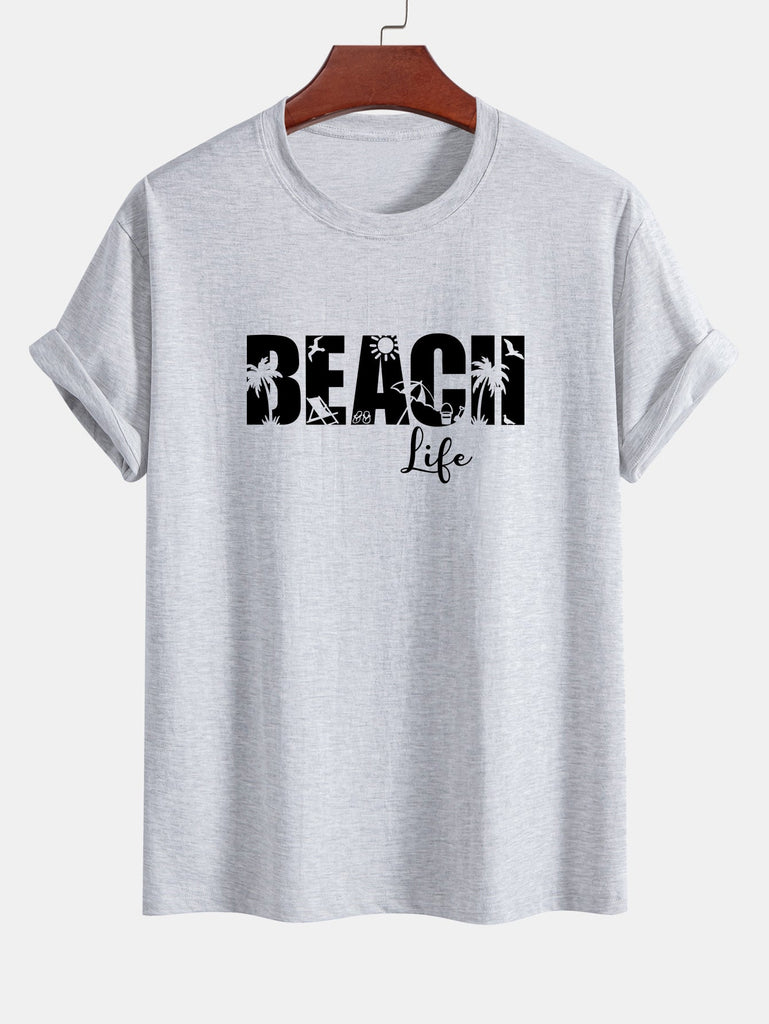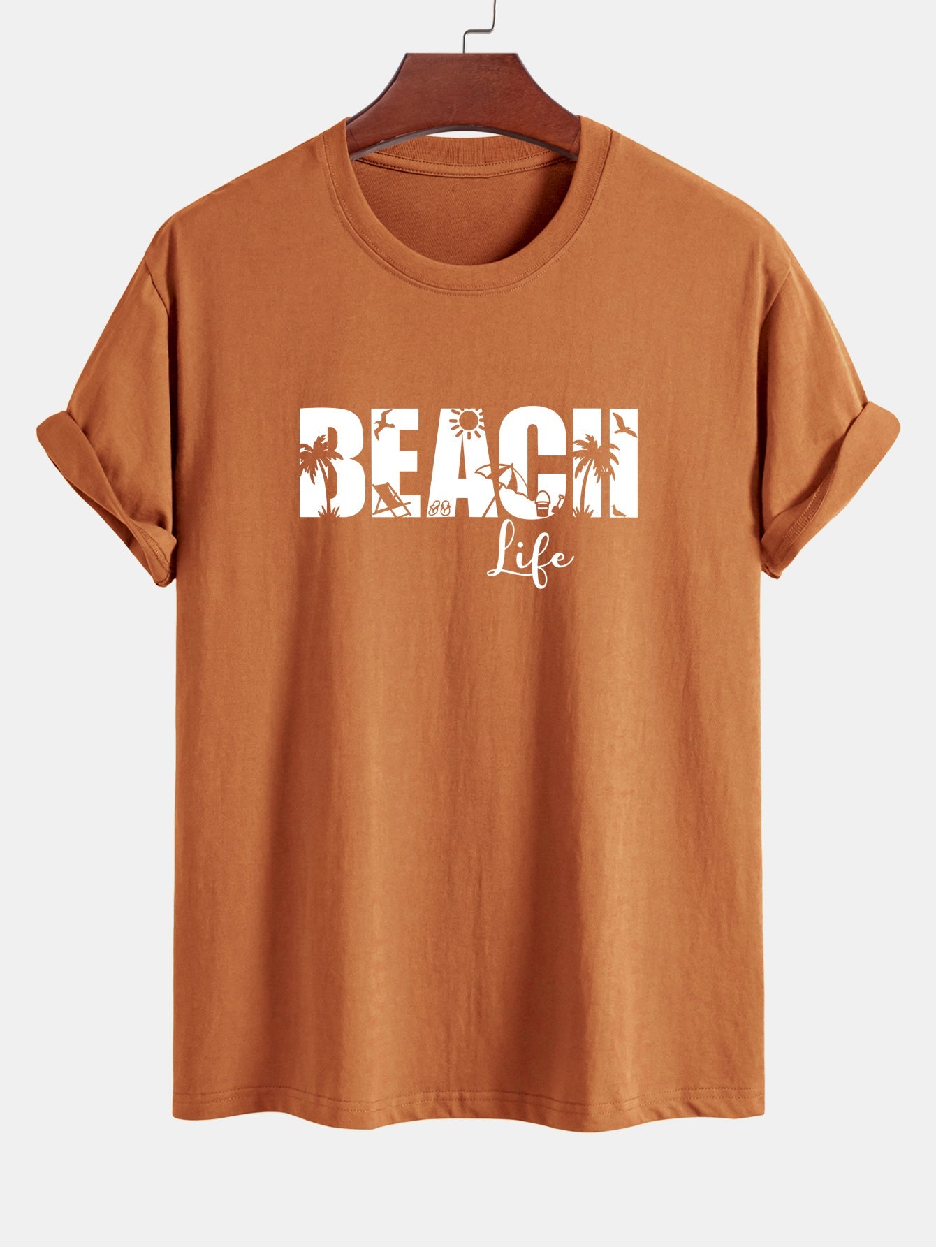Embrace sun-soaked days and easy vibes with our beach life print cotton T-shirt. Featuring a relaxed silhouette and cheerful coastal graphic, this tee is your go-to for warm-weather comfort and laid-back style ¡ª whether you're by the ocean or just dreaming of it.