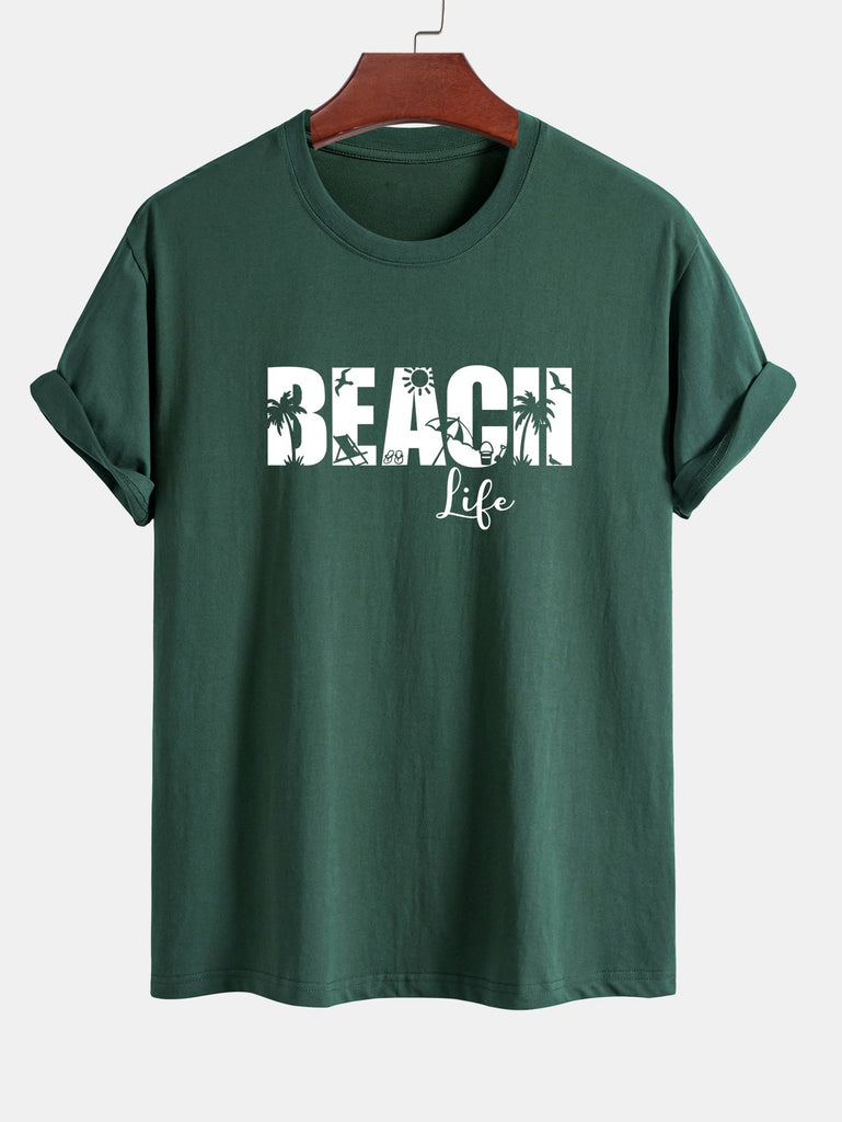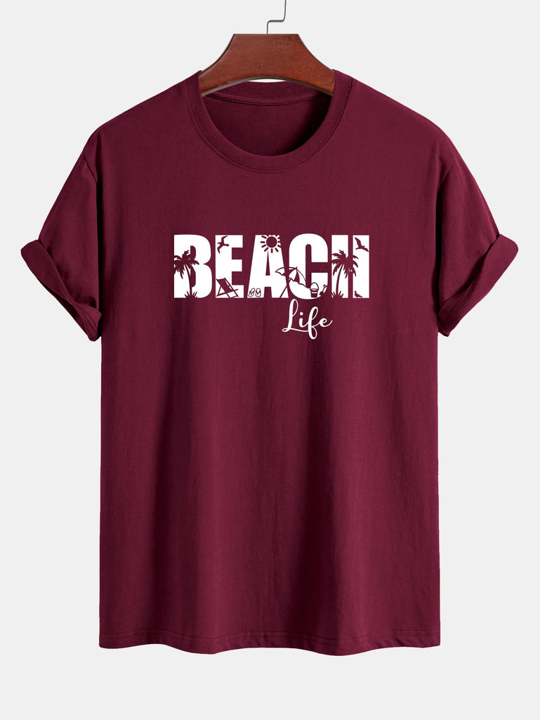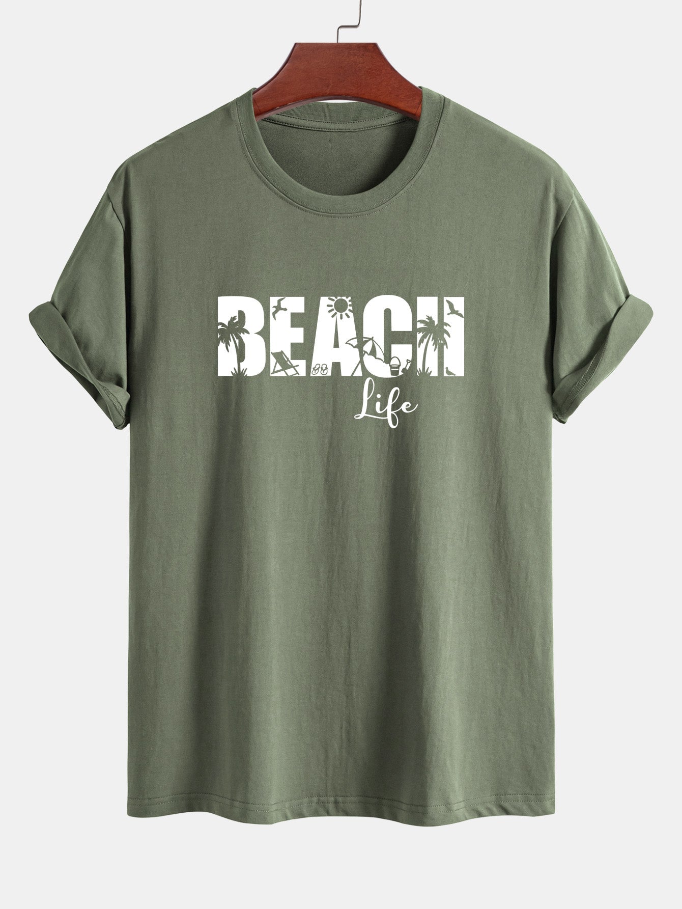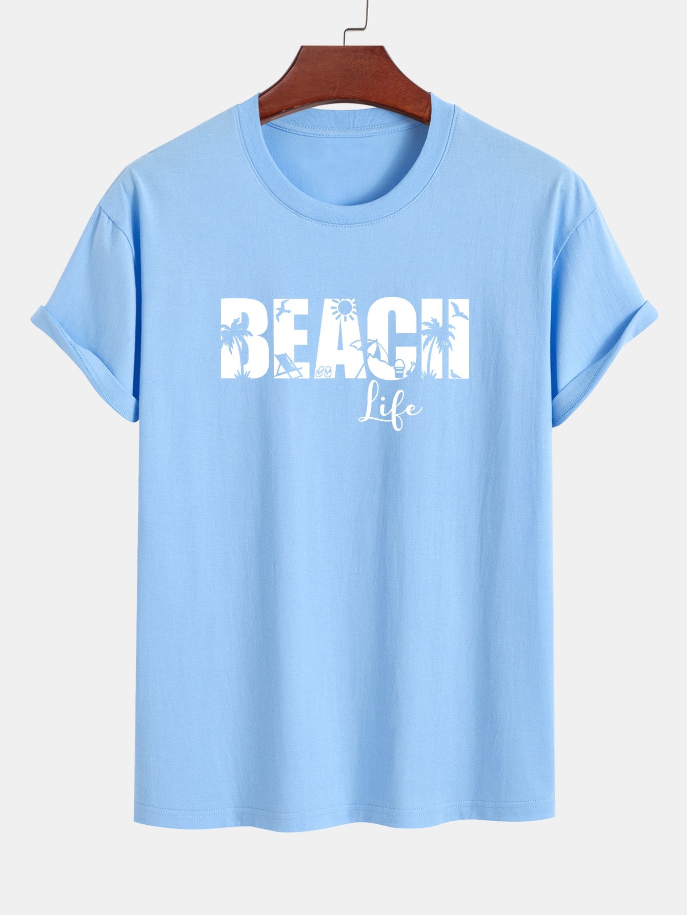 Embrace sun-soaked days and easy vibes with our beach life print cotton T-shirt. Featuring a relaxed silhouette and cheerful coastal graphic, this tee is your go-to for warm-weather comfort and laid-back style ¡ª whether you're by the ocean or just dreaming of it.