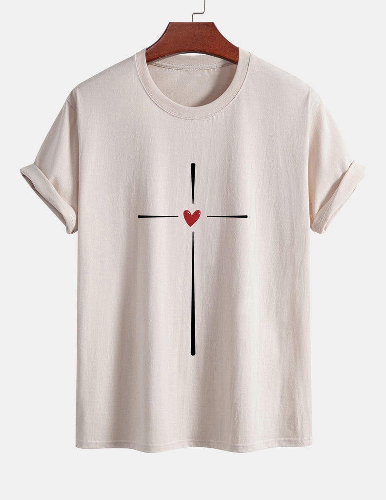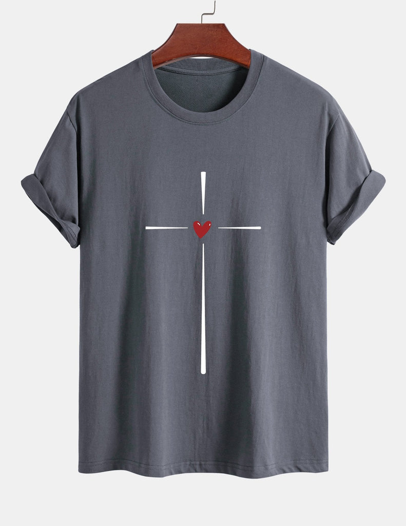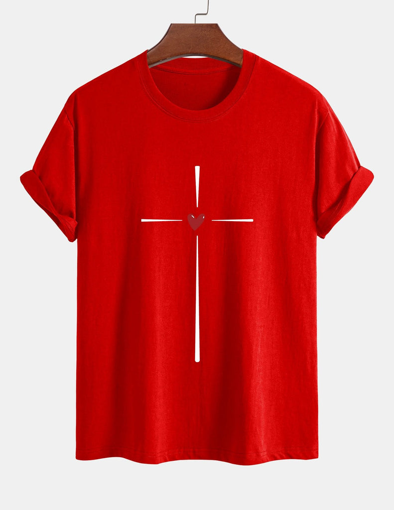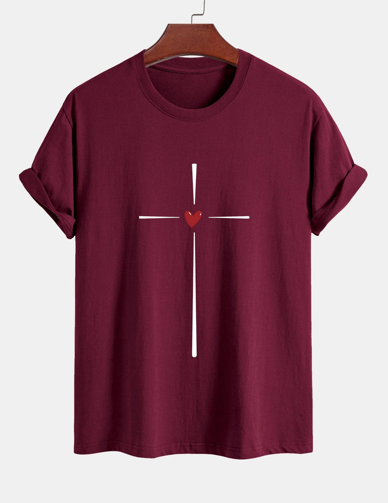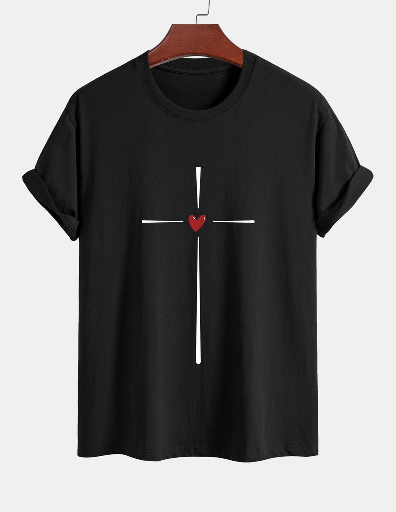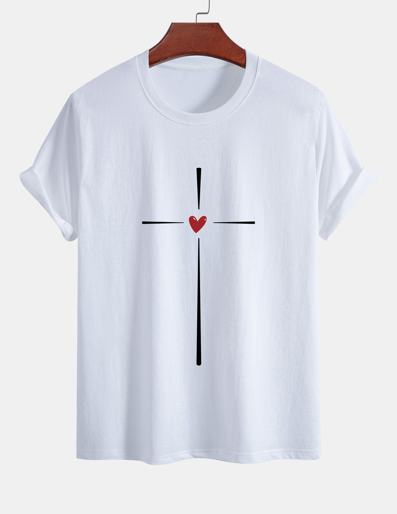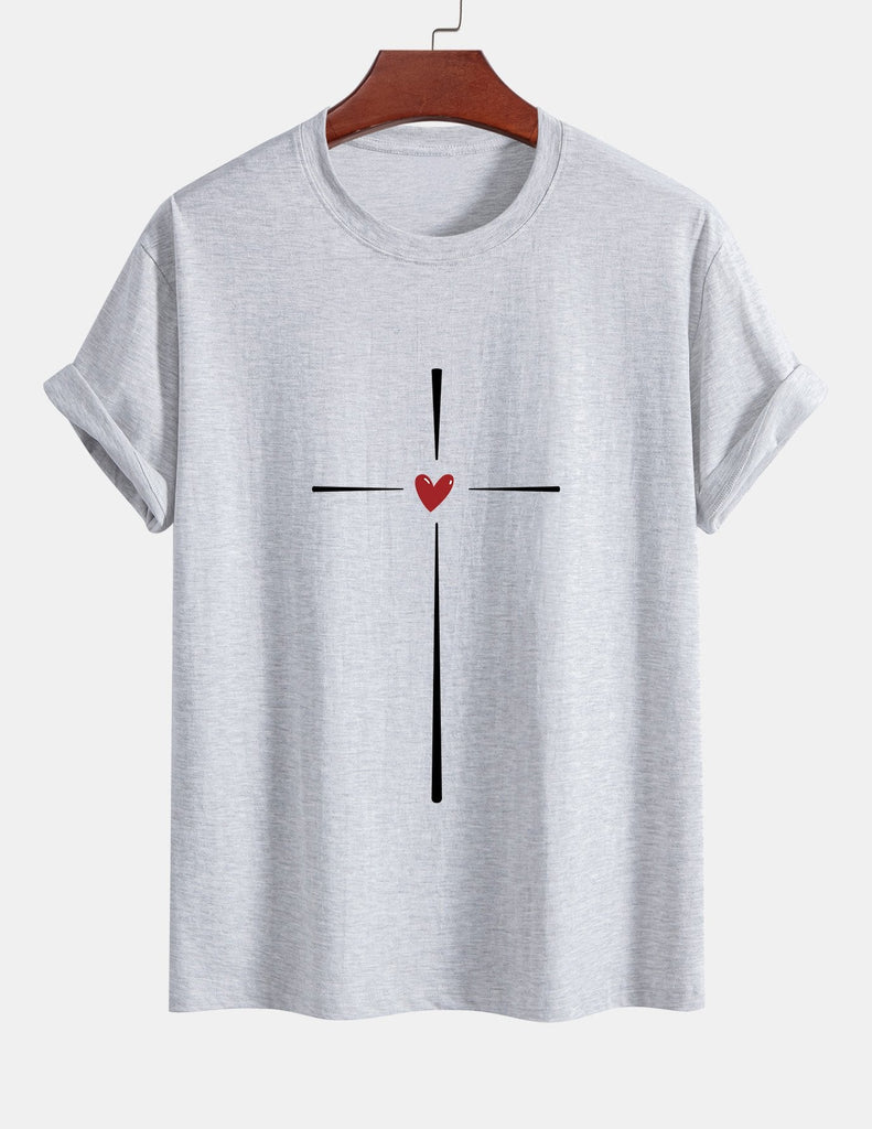 Regular Fit Cross Heart Print Cotton T-Shirt
