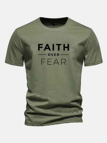 Regular Fit Faith Over Fear Print Cotton T-Shirt