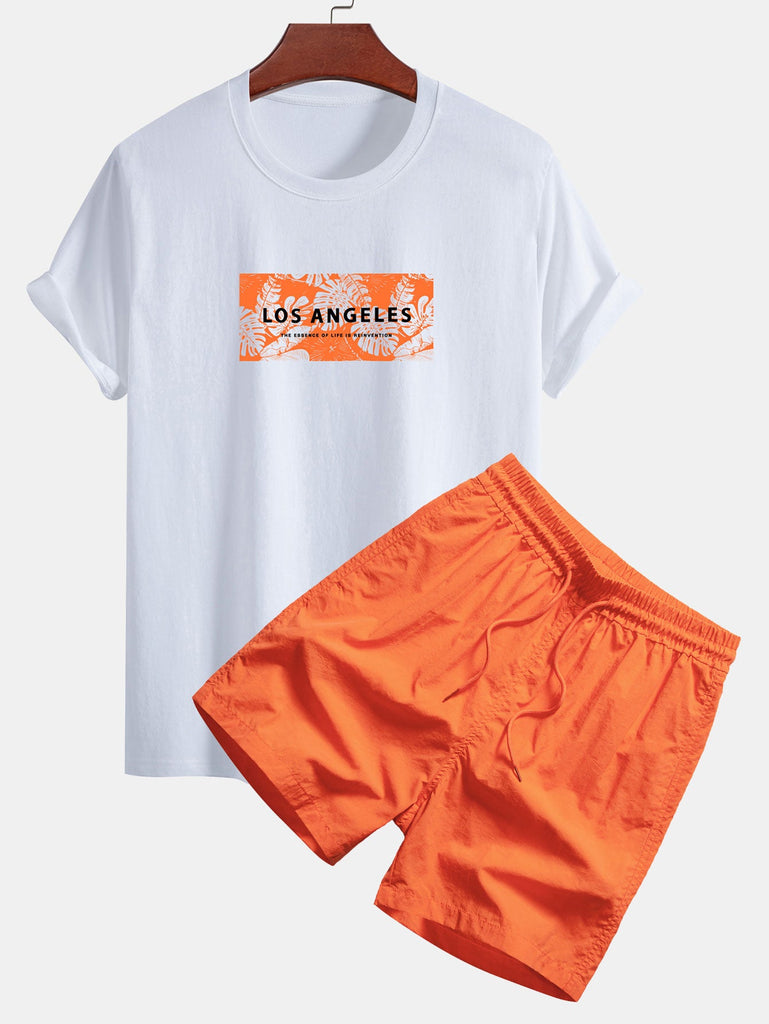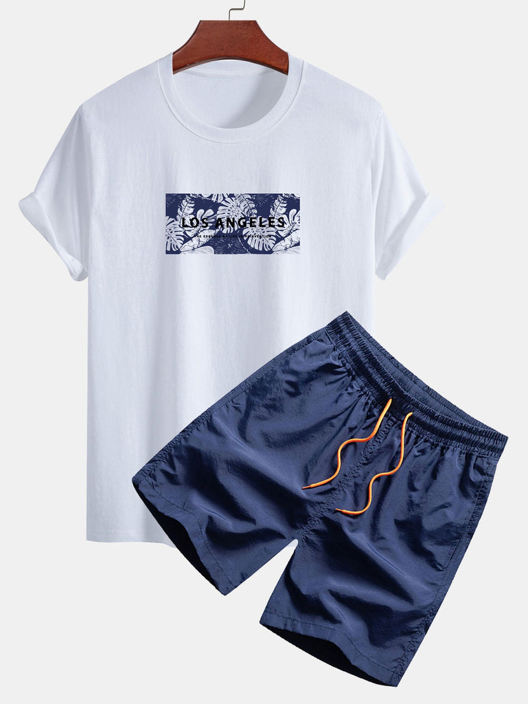 Regular Fit Vacation Los Angeles Print Cotton T-Shirt & Drawstring Swim Shorts