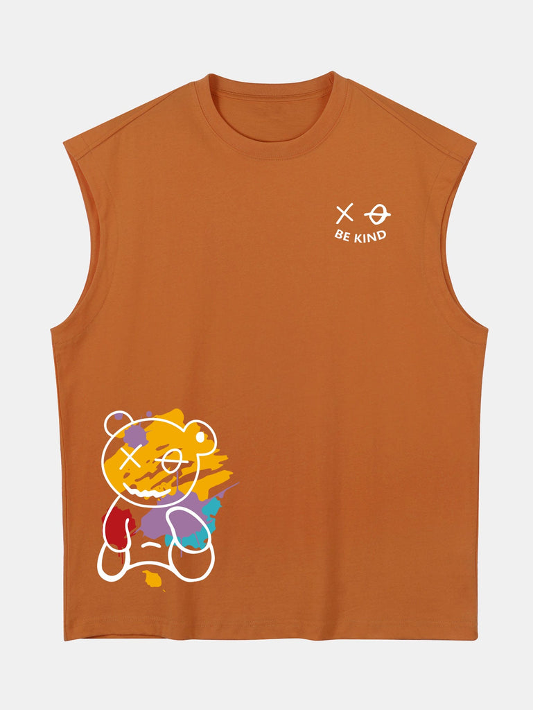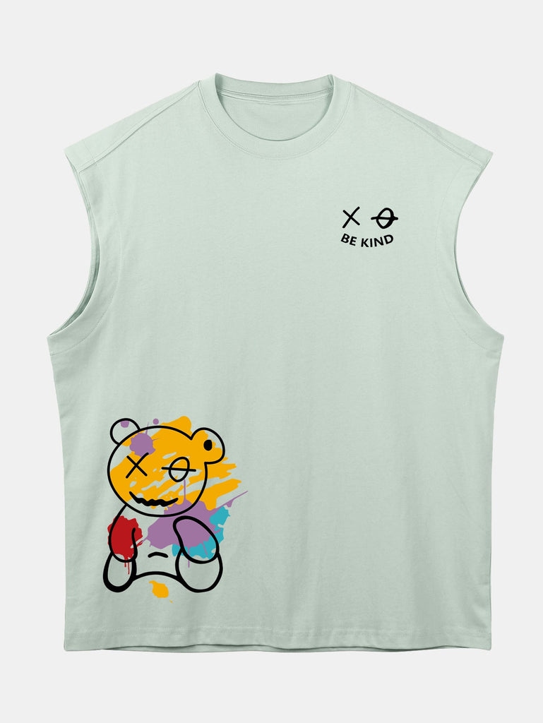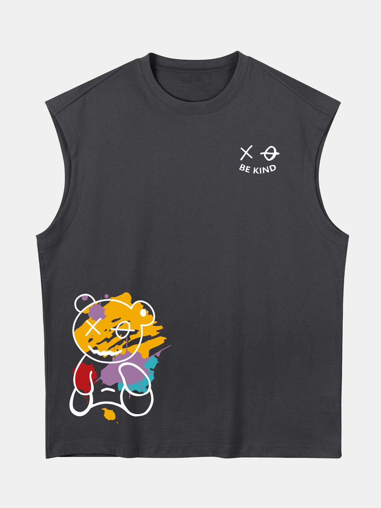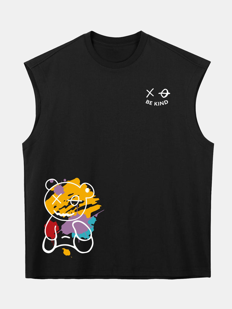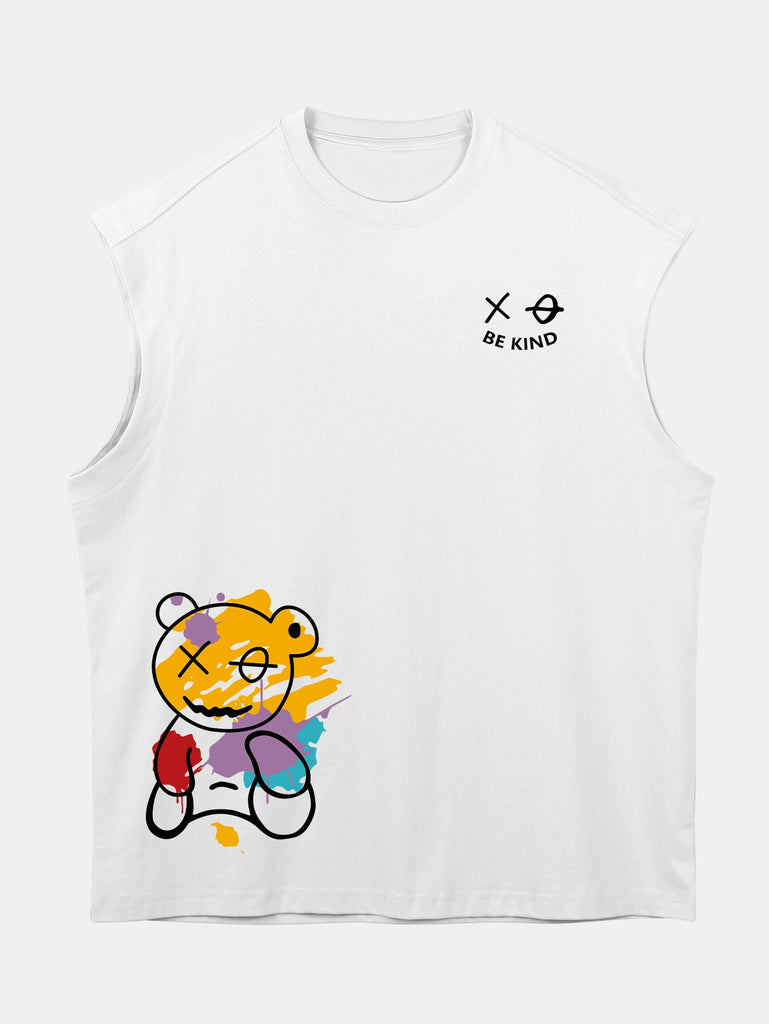 Relax Fit Graffiti Bear Print Cotton Drop Shoulder Sleeveless T-Shirt