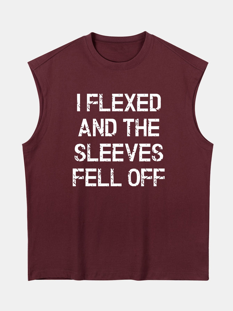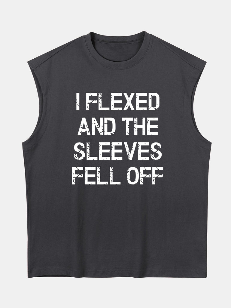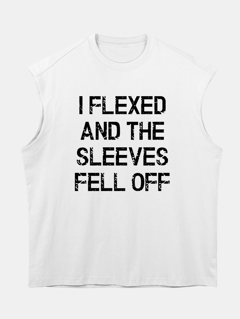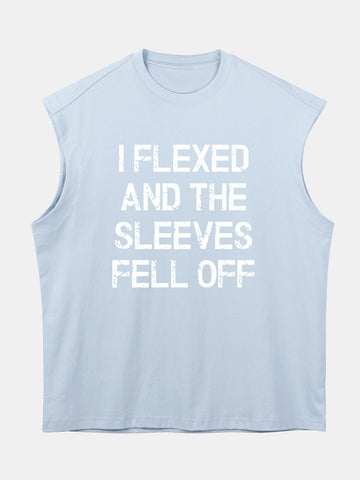 Relax Fit Slogan Print Cotton Drop Shoulder Sleeveless T-Shirt