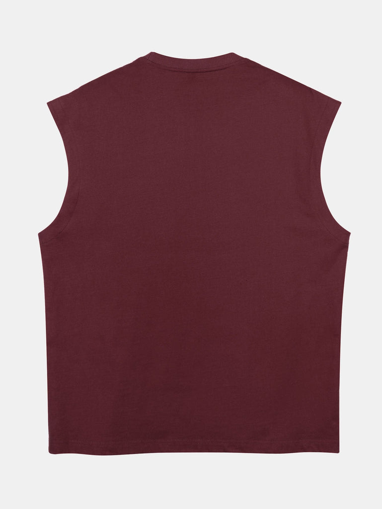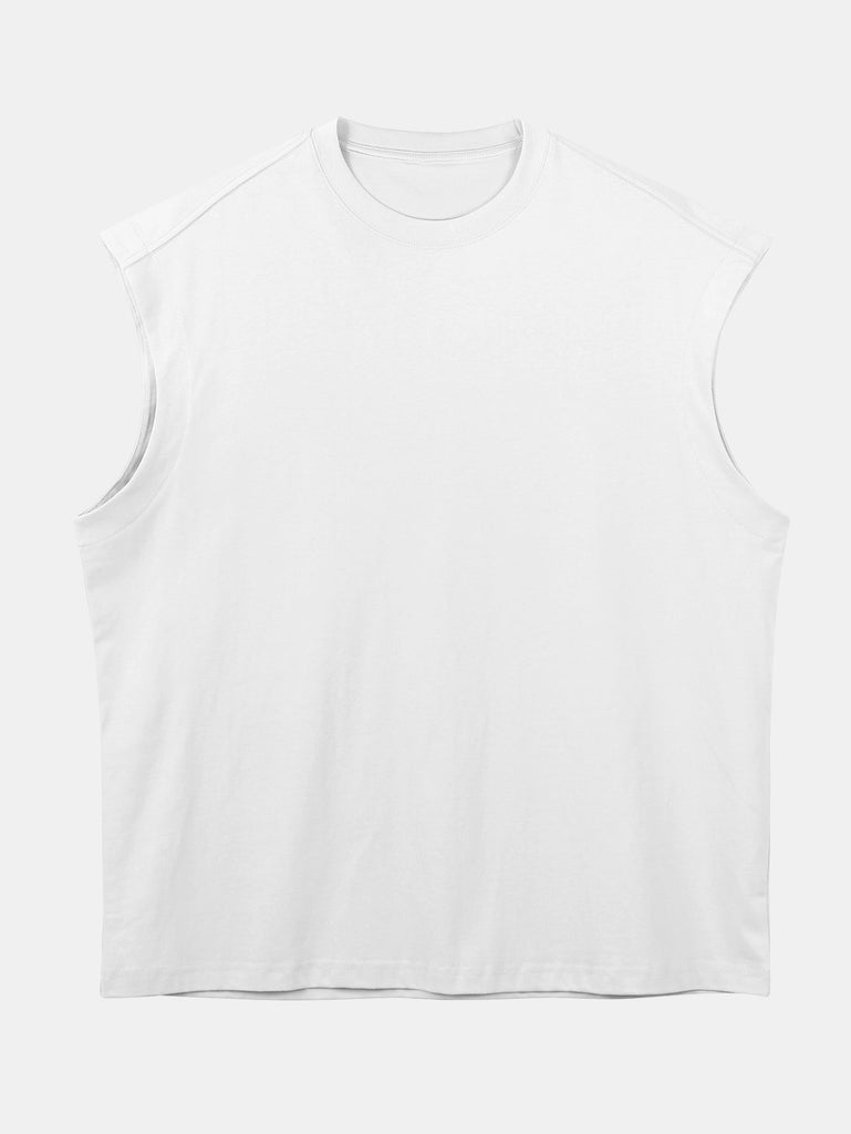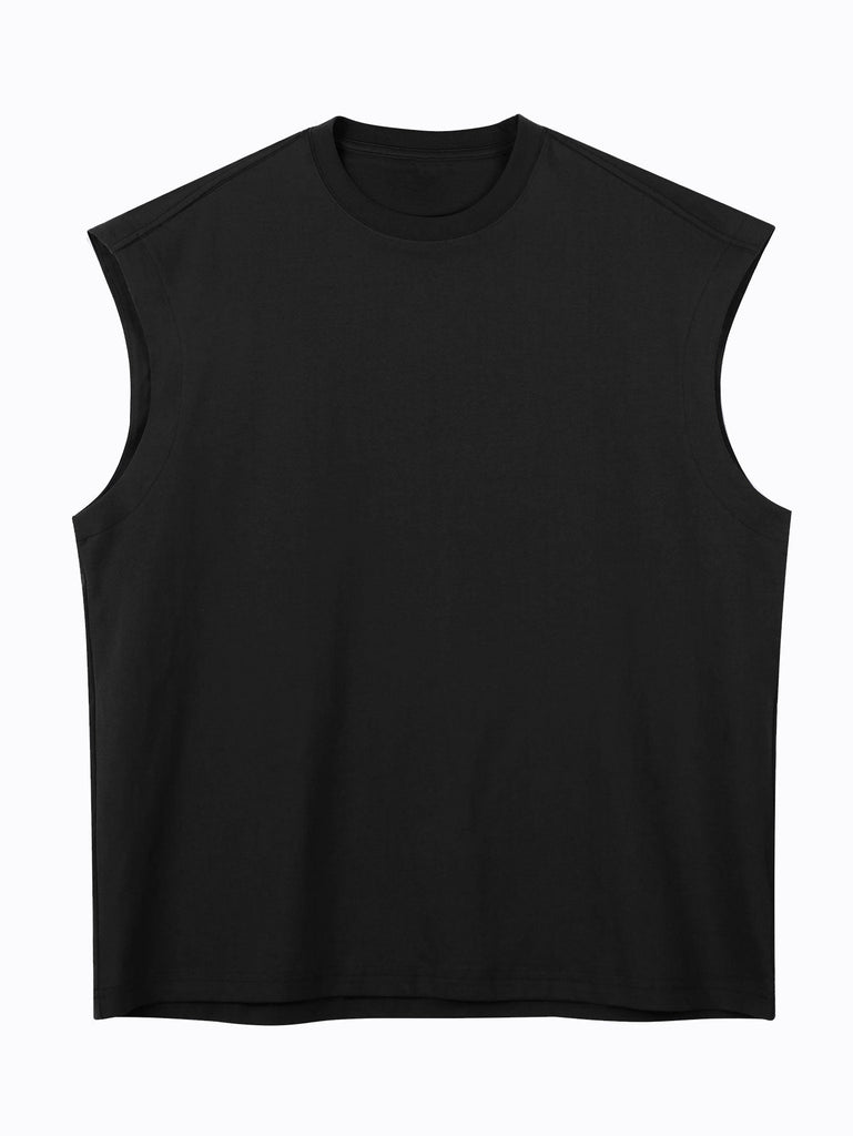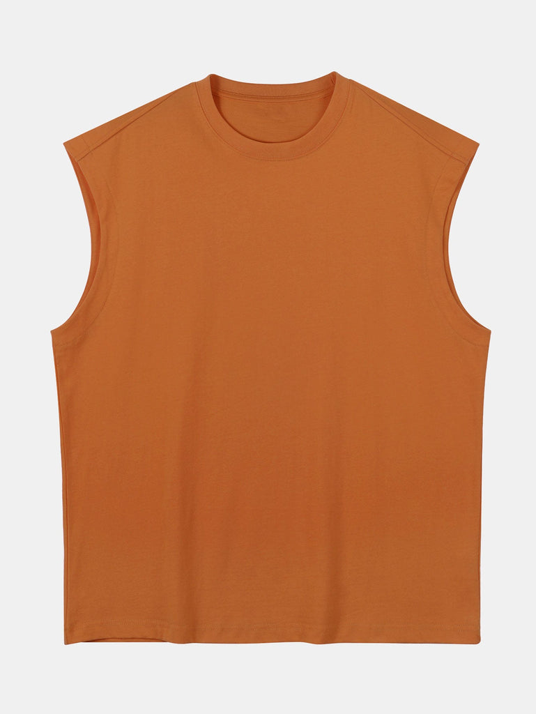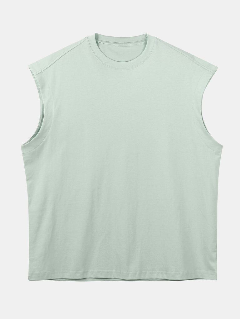 Relax Fit Solid Cotton Drop Shoulder Sleeveless T-Shirt