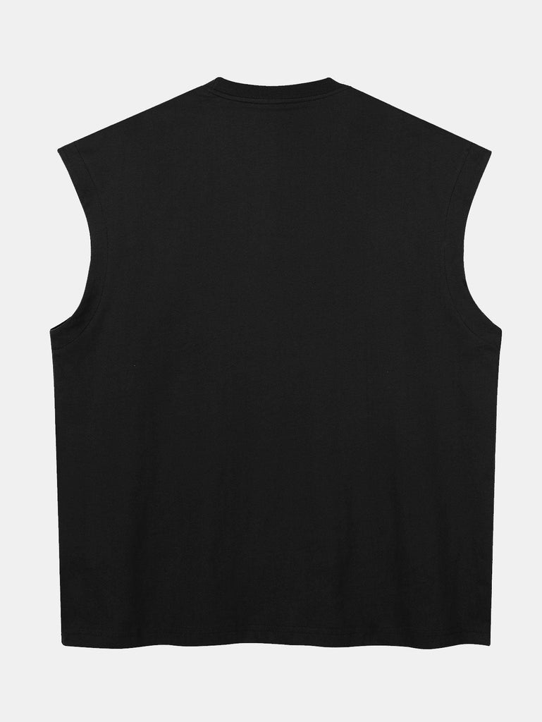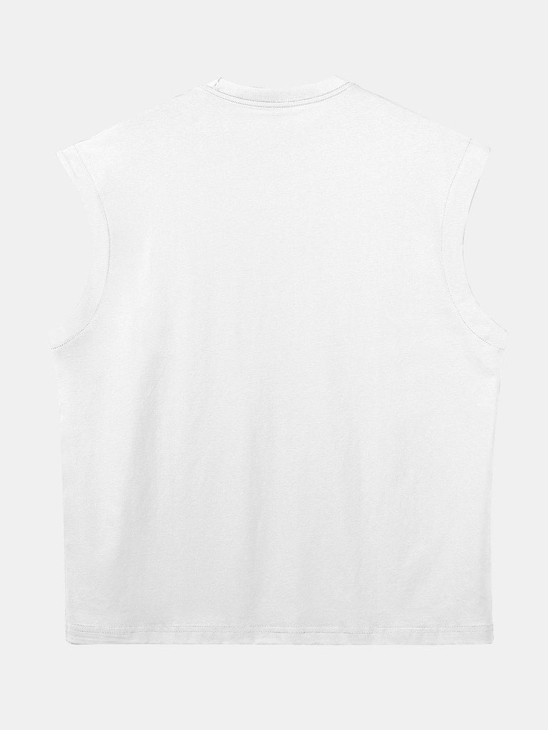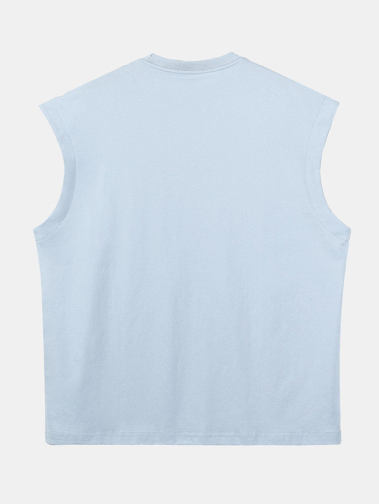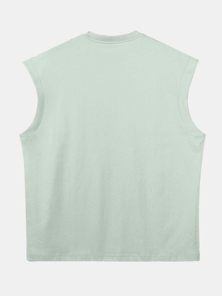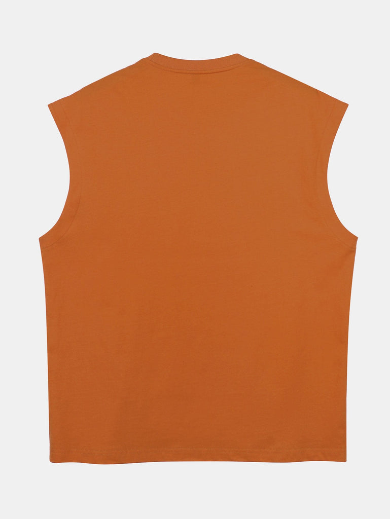 Relax Fit Solid Cotton Drop Shoulder Sleeveless T-Shirt