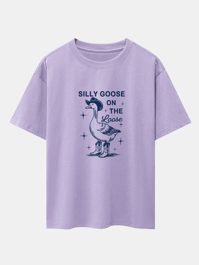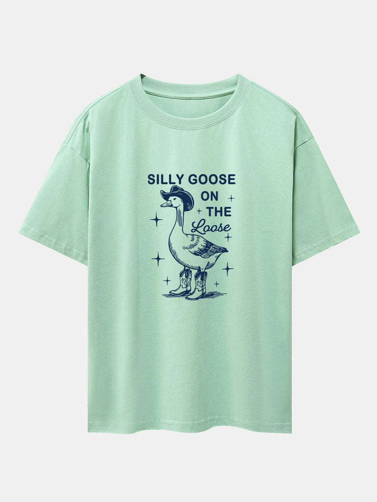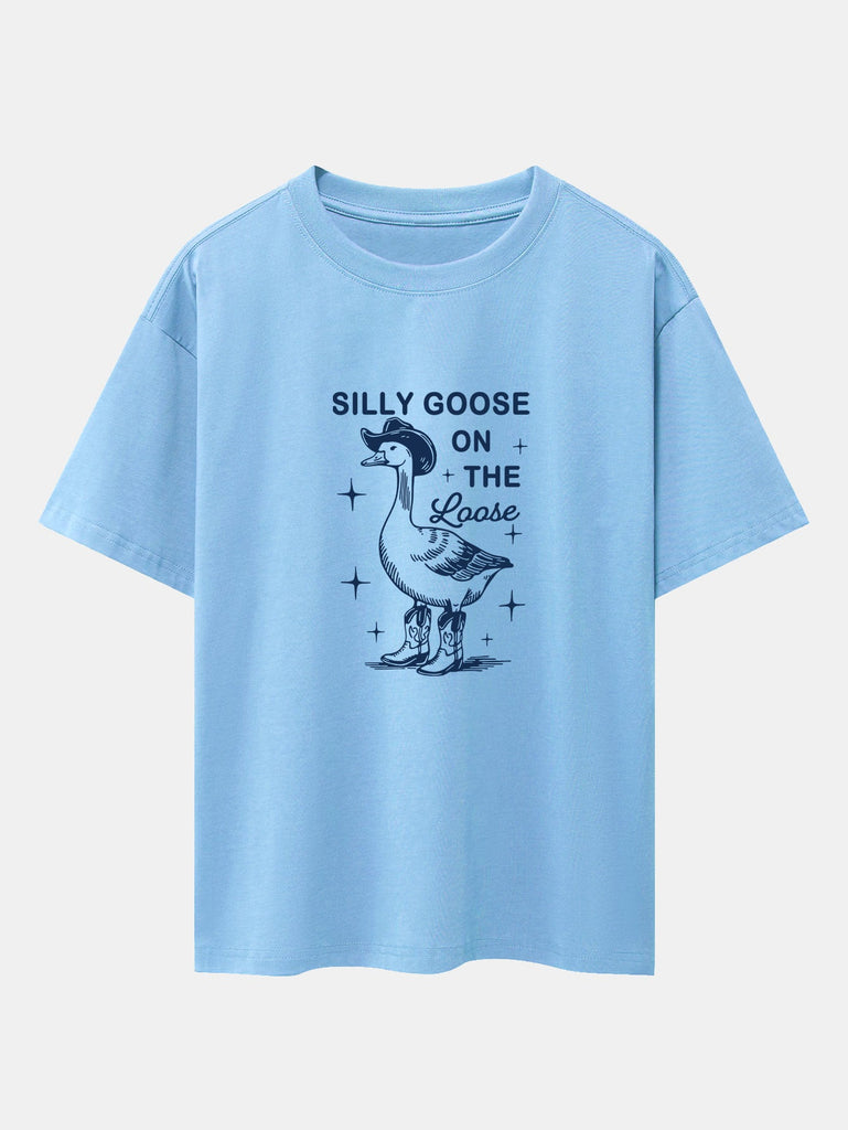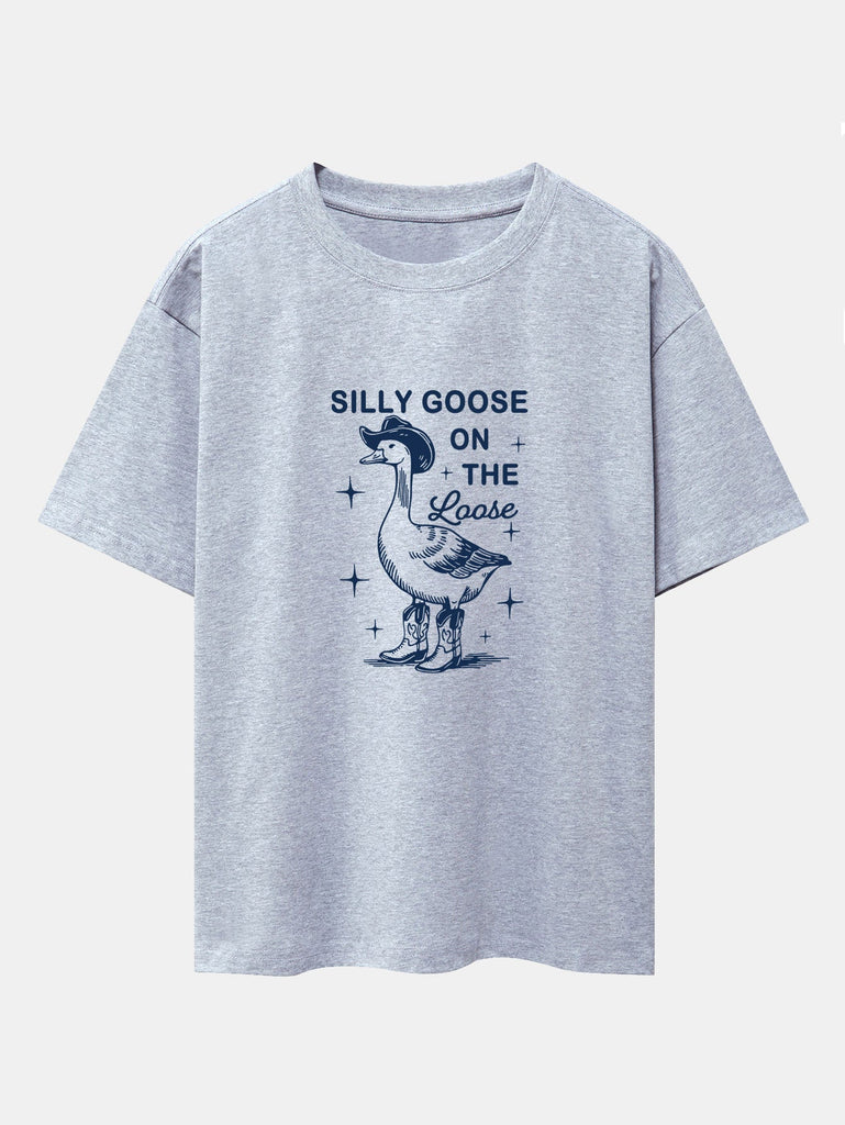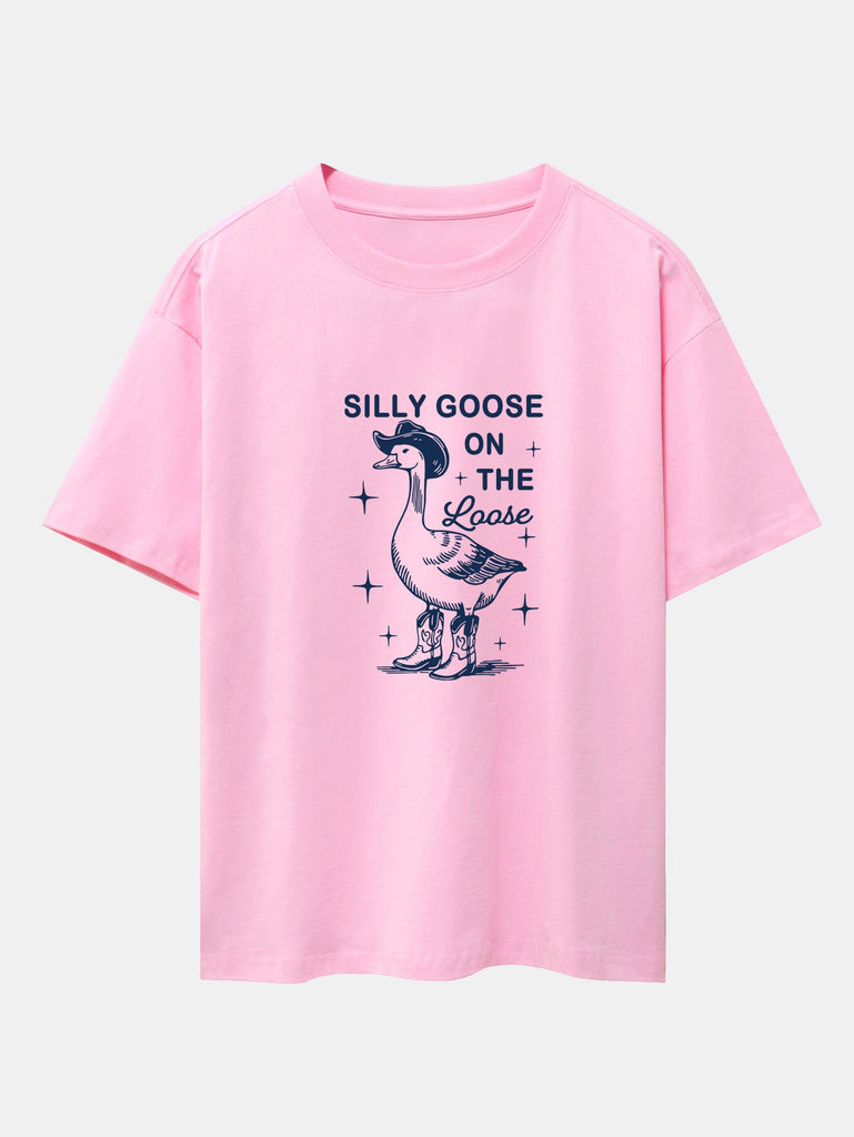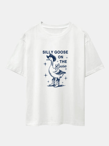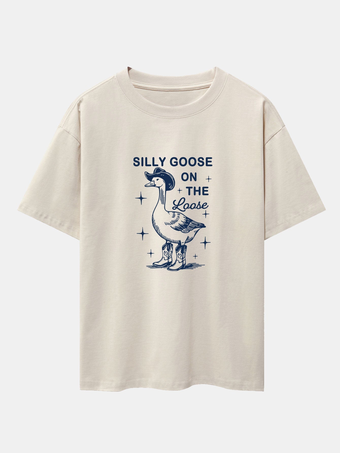 Silly Cowboy Goose Print Drop Shoulder Oversize T-Shirt