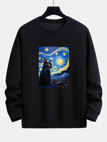 Starry Sky Cat Print Relax Fit Sweatshirt