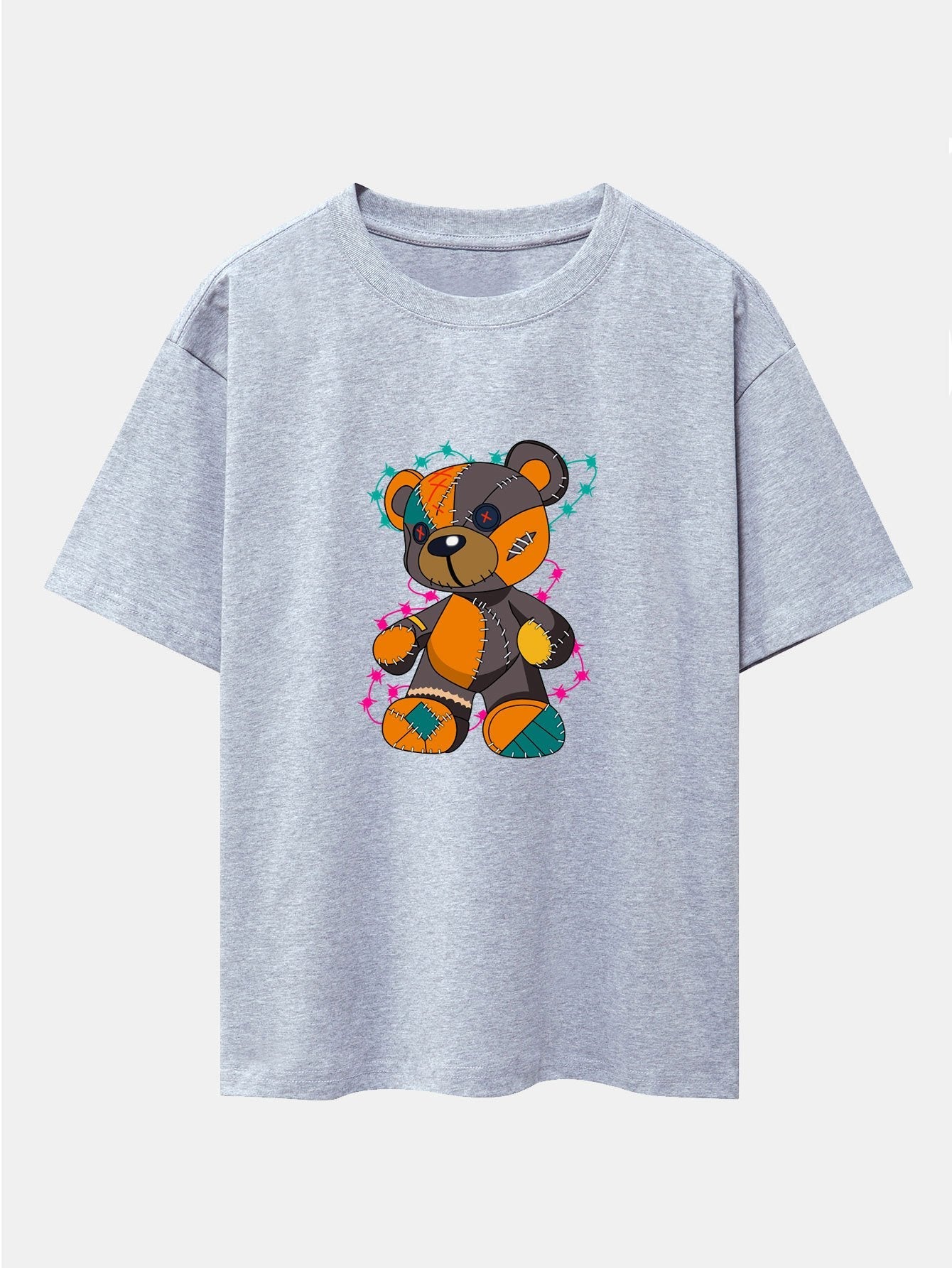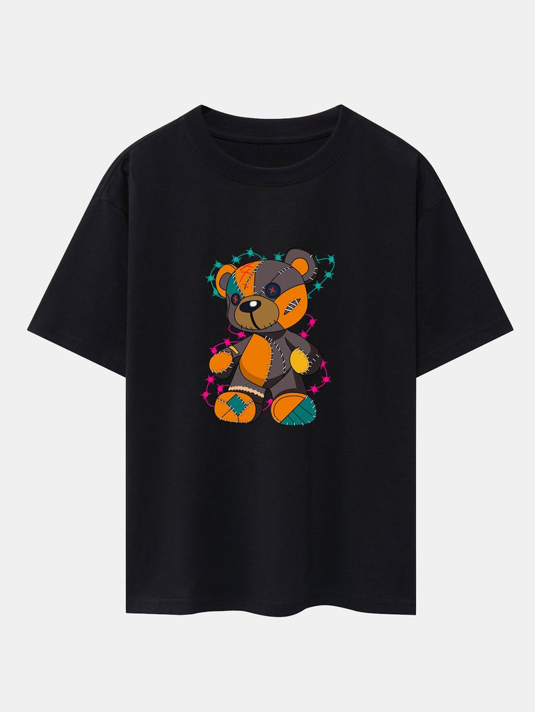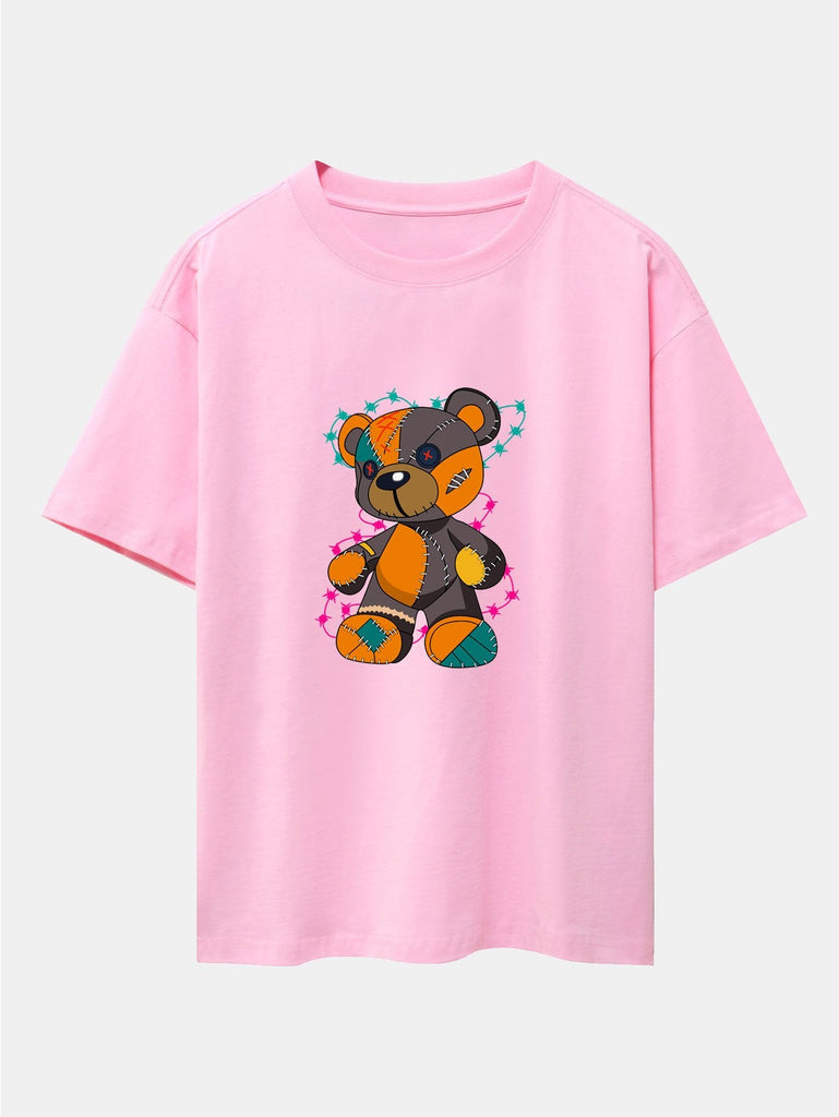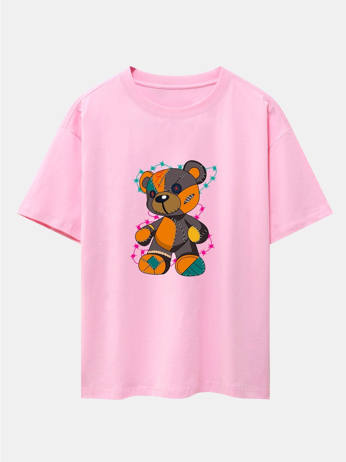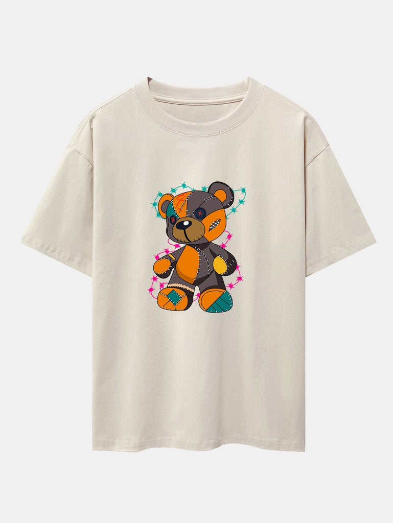 Tattered Bear Print Drop Shoulder Oversize T-Shirt