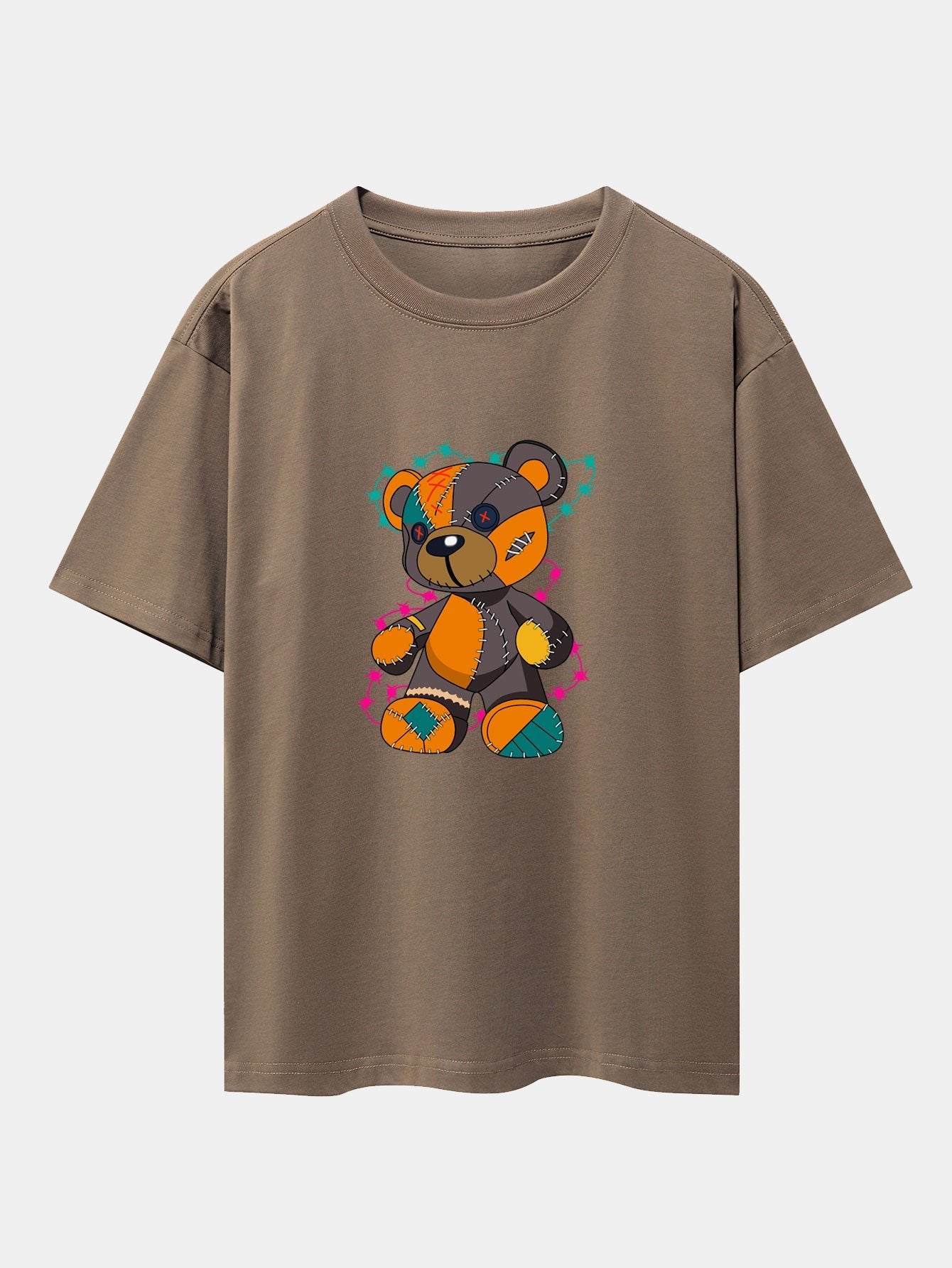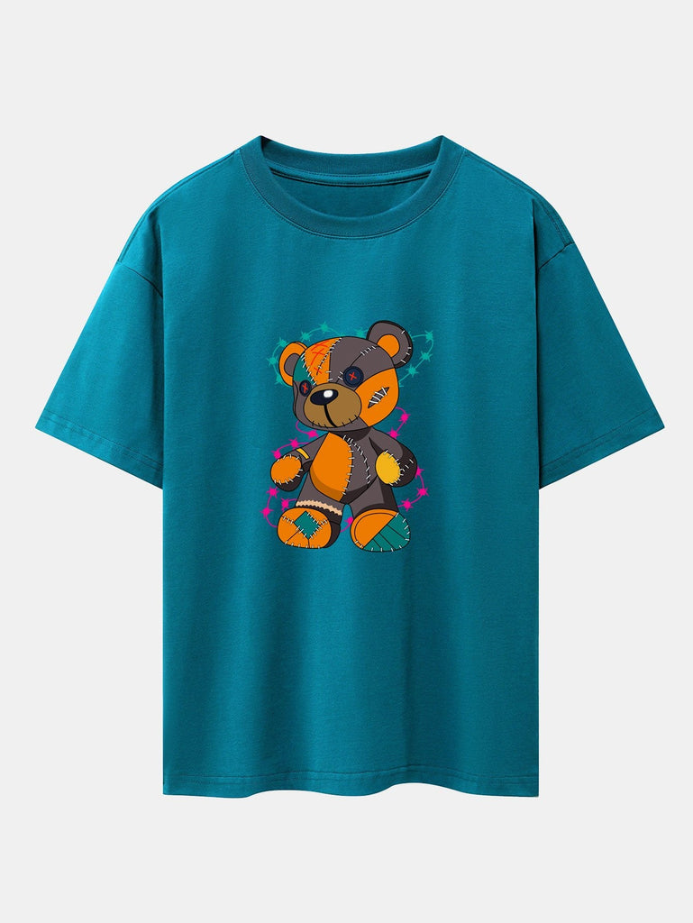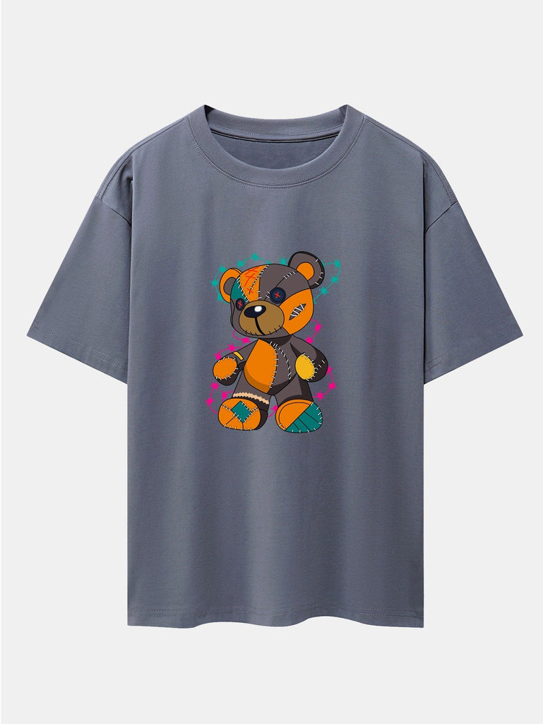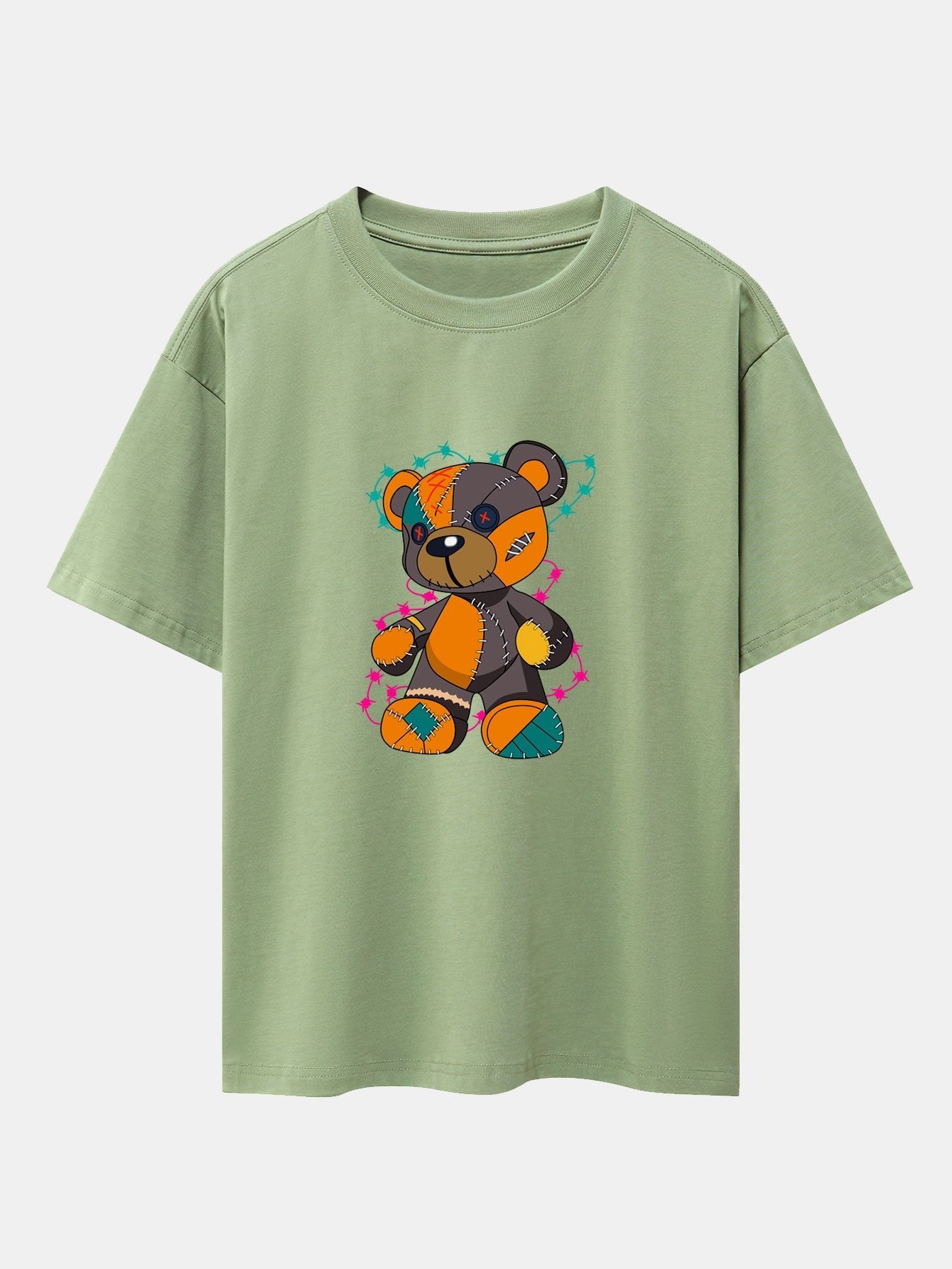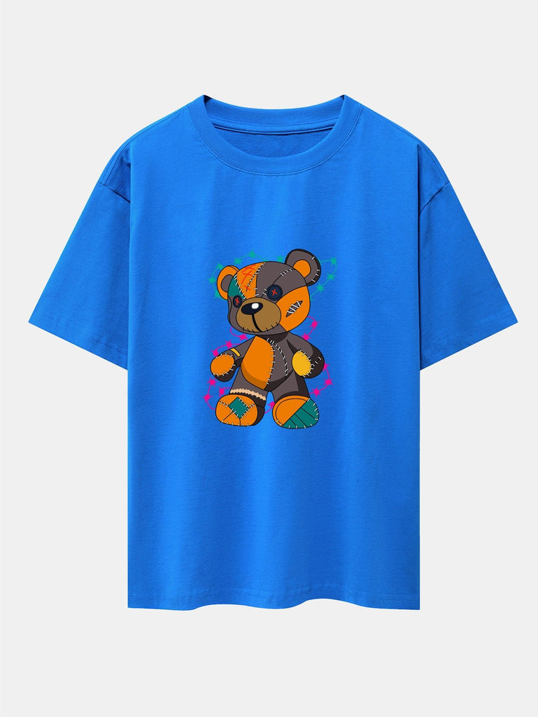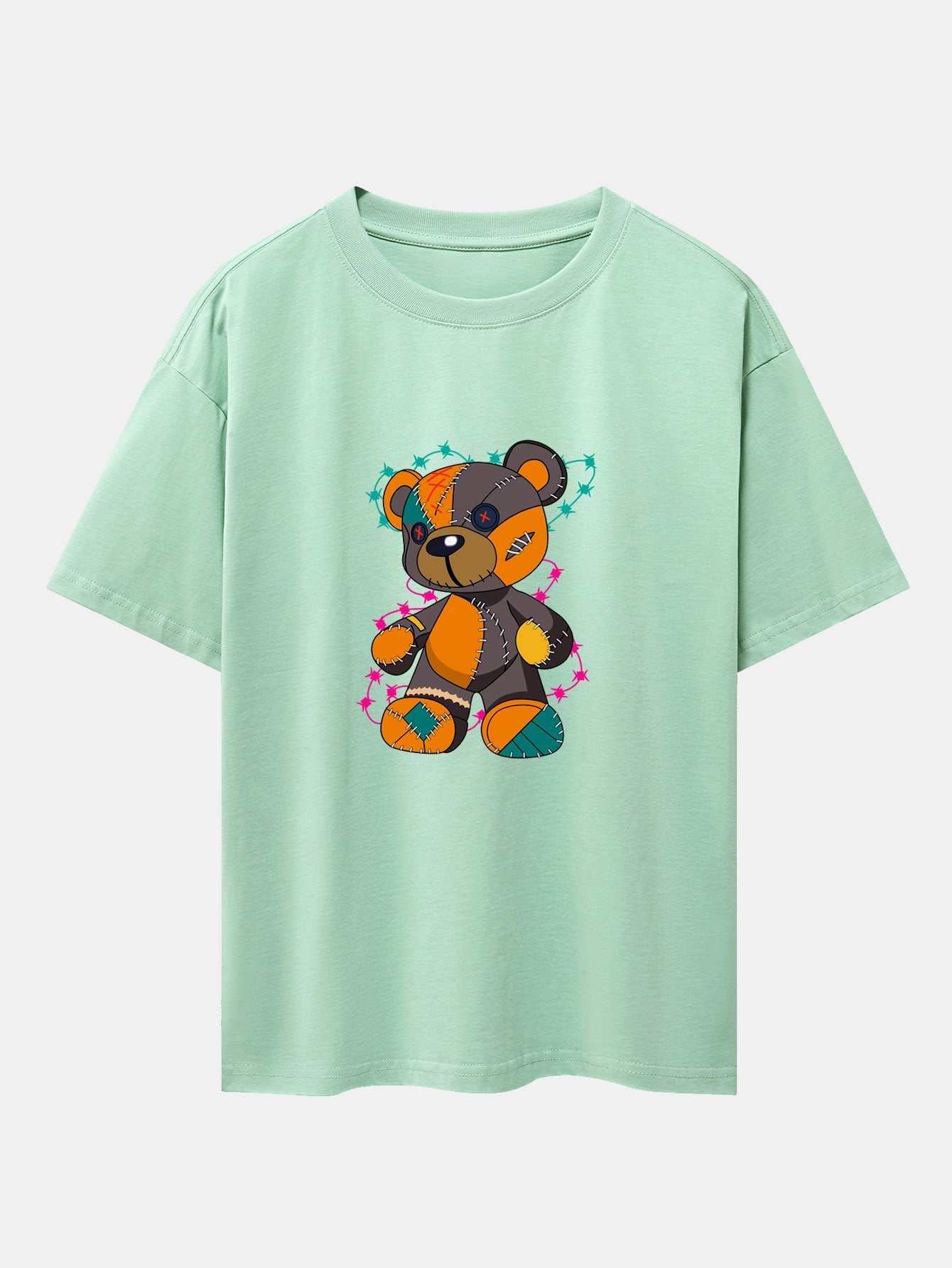 Tattered Bear Print Drop Shoulder Oversize T-Shirt